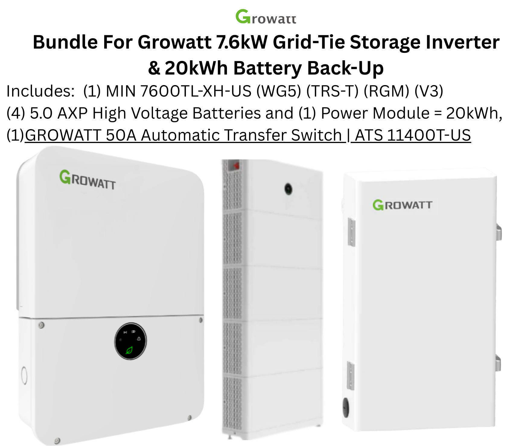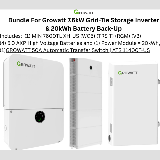 7.6kW Grid-Tied Home Backup System – Growatt Hybrid Inverter with 20 kWh High-Voltage Battery, Power Module & Base