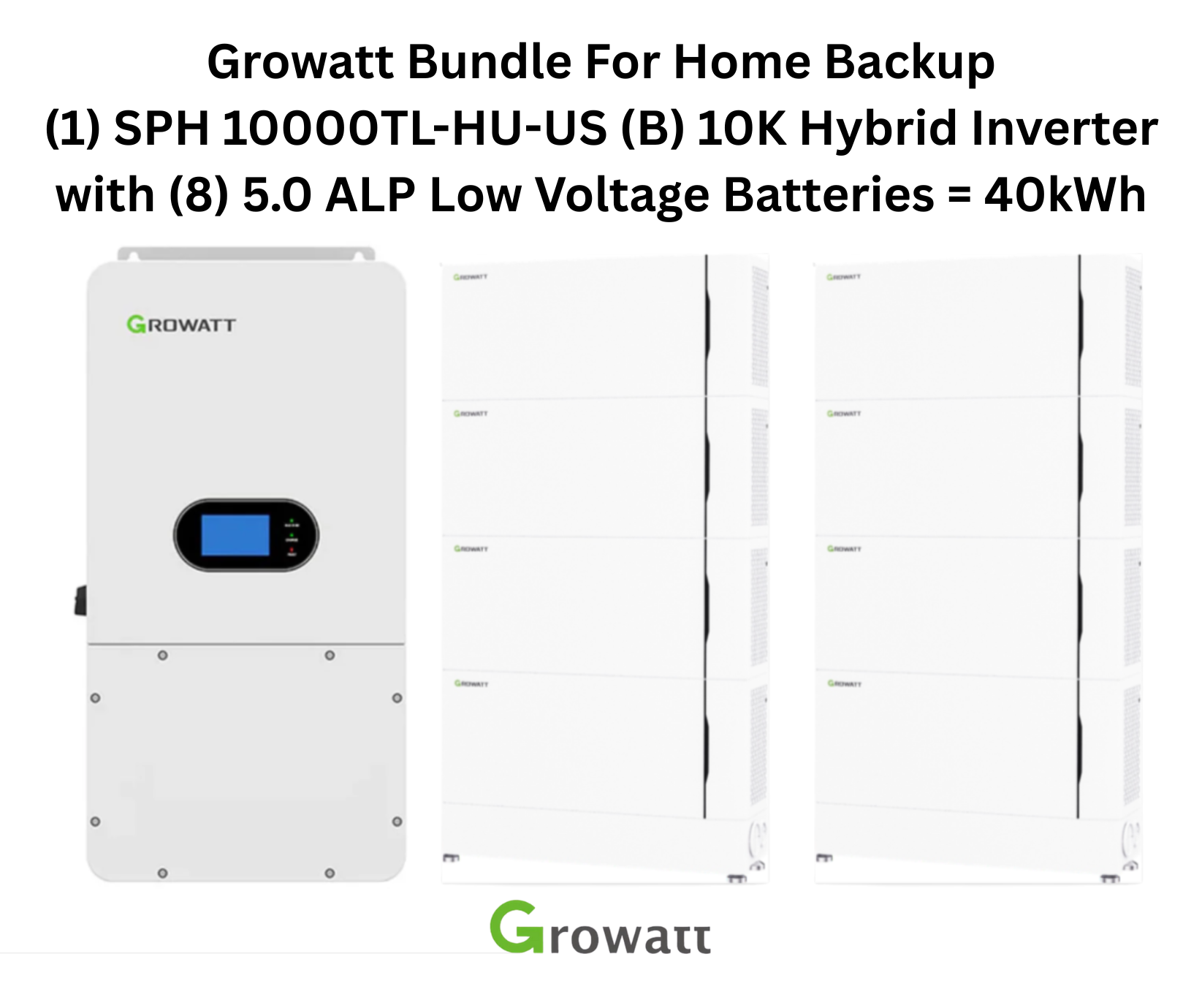 Hybrid Growatt System Bundle – SPH 10000TL-HU-US (Split-Phase) with 40kWh Backup Battery.